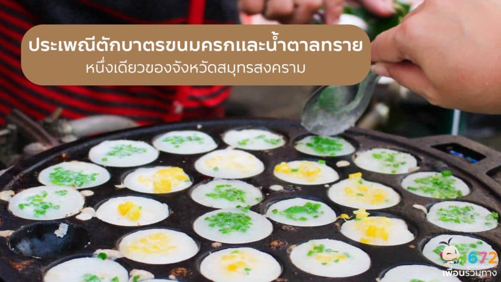 ประเพณีการทำบุญตักบาตรอยู่คู่กับคนไทยมายาวนาน เพื่อน ๆ อาจจะเคยได้ยินประเพณีตักบาตรข้าวเหนียว หรือประเพณีตักบาตรดอกไม้กันมาบ้าง แต่ทราบไหมว่า เรายังมีประเพณีตักบาตรขนมครกและน้ำตาลทรายอีกด้วย ประเพณีนี้มีแห่งเดียวในประเทศไทย คือที่วัดแก่นจันทร์เจริญ ตำบลบางพรม อำเภอบางคนที จังหวัดสมุทรสงคราม โดยจะจัดขึ้นในวันขึ้น 8 ค่ำเดือน 10 ของทุกปี ประเพณีนี้มีที่มาย้อนไปไกลถึงสมัยกรุงศรีอยุธยา สมัยนั้นมีการกำหนดพระราชพิธีที่พระมหากษัตริย์ต้องปฏิบัติในแต่ละเดือน เรียกว่า พระราชพิธีสิบสองเดือน ซึ่งหนึ่งในนั้นคือ พระราชพิธีบำเพ็ญพระราชกุศลเลี้ยงขนมเบื้องพระสงฆ์ภายในพระที่นั่งอมรินทรวินิจฉัย โดยปฏิบัติสืบทอดมาจนถึงสมัยพระบาทสมเด็จพระจุลจอมเกล้าเจ้าอยู่หัว รัชกาลที่ 5 ในช่วงปลายรัชสมัยรัชกาลที่ 5 พระครูสุนทรสุตกิจ (หลวงปู่โห้) เจ้าอาวาสวัดแก่นจันทร์เจริญ ต้องการสืบสานประเพณีตักบาตรขนมเบื้องนี้ไว้ แต่สมัยนั้นขนมเบื้องต้องใช้วัตถุดิบมากมายและทำยาก หลวงปู่จึงปรับเปลี่ยนมาเป็นการตักบาตรขนมครก เพราะขนมครกทำง่ายและหาวัตถุดิบไม่ยาก เริ่มแรกพ่อค้าแม่ค้าจะพายเรือมาขายขนมครกให้ชาวบ้านที่มาใส่บาตรที่วัด ต่อมาเมื่อการค้าขายทางเรือไม่เป็นที่นิยม ชาวบ้านจึงเปลี่ยนมาทำขนมครกกันที่วัดแทน เริ่มตั้งแต่การหมักข้าวสารเอาไว้ 1 คืน พอรุ่งเช้าก็จะช่วยกันโม่แป้ง คั้นน้ำกะทิ และหยอดแป้งทำขนมครก จากนั้นก็ร่วมกันตักบาตรพระสงฆ์ ดังนั้นขนมครกจึงเป็นสัญลักษณ์ของความสามัคคี และเป็นที่มาของคำว่า ขนมครก “ขนมของ คน-รัก-กัน” อีกด้วย 👉 ปัจจุบันในงานประเพณี นอกจากพิธีตักบาตรแล้ว ยังมีกิจกรรมสนุกสนานที่สร้างสีสันภายในงานอีก เช่น การประกวดทำขนมครก การแข่งขูดมะพร้าว และแข่งกินขนมครก เป็นต้น 🙏 ขอบคุณรูปภาพจาก ททท. สำนักงานสมุทรสงคราม
