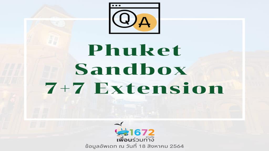 สวัสดีเพื่อน ๆ ทุกคน พบกันอีกครั้งกับ Q&A ในช่วง #PhuketSandBox แอดนำคำถามเกี่ยวกับ Phuket 7+7 Extension มาคลายข้อสงสัยให้เพื่อน ๆ ทราบกันเพิ่มเติม สามารถดูมาตรการการเข้าและออกได้ที่ https://www.facebook.com/145316445540444/posts/5964045437000820/?d=n English Translation You can be found via : https://www.facebook.com/145316445540444/posts/5973201932751837/?d=n —————————————————————————— สำหรับเพื่อน ๆ ที่มีข้อข้องใจนอกเหนือจากที่แอดนำเสนอในบทความนี้ สามารถอ่านเพิ่มเติมได้จากบทความด้านล่างได้เลย ถาม-ตอบ ข้อสงสัยเกี่ยวกับการเดินทางเข้าภูเก็ต ถาม-ตอบ คลายข้อสงสัย Phuket Sandbox ถาม-ตอบ คลายข้อสงสัย ภูเก็ตแซนบอกซ์ : Clarify Your Doubts of Phuket Sandbox ถาม-ตอบ คลายข้อสงสัย ภูเก็ตแซนบอกซ์ : Clarify Your Doubts of Phuket Sandbox EP 2 ถาม-ตอบ คลายข้อสงสัย ภูเก็ตแซนบอกซ์ : Clarify Your Doubts of Phuket Sandbox EP 3 ถาม-ตอบ คลายข้อสงสัย ภูเก็ตแซนบอกซ์ : Clarify Your Doubts of Phuket Sandbox EP 4 ถาม-ตอบ คลายข้อสงสัย ภูเก็ตแซนบอกซ์ : Clarify Your Doubts of Phuket Sandbox EP 5 ถาม-ตอบ คลายข้อสงสัย ภูเก็ตแซนบอกซ์ : Clarify Your Doubts of Phuket Sandbox EP 6 ถาม-ตอบ คลายข้อสงสัย ภูเก็ตแซนบอกซ์ : Clarify Your Doubts of Phuket Sandbox EP 7 ถาม-ตอบ คลายข้อสงสัย ภูเก็ตแซนบอกซ์ : Clarify Your Doubts of Phuket Sandbox EP 8 ถาม-ตอบ คลายข้อสงสัย ภูเก็ตแซนบอกซ์ : Clarify Your Doubts of Phuket Sandbox EP 9 ถาม-ตอบ คลายข้อสงสัย Phuket Sandbox 7+7 Extension ถาม-ตอบ คลายข้อสงสัย Phuket Sandbox 7+7 Extension EP 3