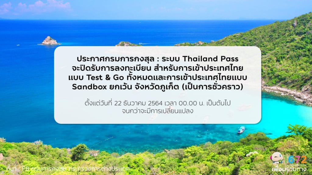 📢 ประกาศกรมการกงสุล : ระบบ Thailand Pass จะปิดรับการลงทะเบียน สำหรับการเข้าประเทศไทย แบบ Test & Go ทั้งหมด และการเข้าประเทศไทยแบบ Sandbox ยกเว้น จังหวัดภูเก็ต (เป็นการชั่วคราว) ตั้งแต่วันที่ 22 ธันวาคม 2564 เวลา 00.00 น. เป็นต้นไปจนกว่าจะมีการเปลี่ยนแปลง 🔺 “ผู้ที่ลงทะเบียนแล้ว” จะต้องปฏิบัติตามแนวทาง ดังนี้ 🔺 คนที่ลงทะเบียนแล้วและได้รับอนุมัติสามารถเดินทางเข้าประเทศไทยได้ตามมาตรการที่ได้รับอนุมัติ ที่ลงทะเบียนแล้ว และกำลังรอการพิจารณาขอให้รอการพิจารณา Thailand Pass QR Code หากได้รับอนุมัติจะเดินทางเข้าประเทศไทยได้ตามมาตรการที่ได้รับอนุมัติ ผู้ที่จะเดินทางเข้าประเทศไทยในรูปแบบการกักตัว (AQ) และรูปแบบ Sandbox ในพื้นที่จังหวัดภูเก็ตสามารถลงทะเบียนได้ตามปกติ ผู้เดินทางที่มีกำหนดจะเดินทางเข้าประเทศไทยในรูปแบบ Test & Go และ Sandbox จะต้องเข้ารับการตรวจเชื้อครั้งที่ 2 โดยวิธี RT-PCR (จากเดิม ATK) ณ สถานที่ที่ทางราชการกำหนดโดยไม่เสียค่าใช้จ่าย Bangkok, 21 December, 2021 – Thailand’s Centre for COVID-19 Situation Administration (CCSA) today ordered temporarily suspension of the Thailand Pass for all new TEST&GO and Sandbox applications (except Phuket Sandbox), effective from 22 December, 2021, citing the rising number of Omicron variant cases in the country. Travellers who have already received a Thailand Pass QR code (approximately 200,000 applicants) will be allowed to enter Thailand under the existing conditions of the scheme they have registered. However, the government will introduce new measures for contact tracing and will ensure all travellers be tested 2 times using the RT-PCR method. The second testing will take place at government-designated facilities (no additional cost). New registration for Thailand Pass under the Exemption from Quarantine (TEST&GO) and Living in the Blue Zone Sandbox programmes will no longer be accepted, starting from 22 December, 2021 until further notice. Applicants who have registered, but have not received their QR Code must wait for their Thailand Pass to be considered / approved. Once approved, they can enter Thailand under the scheme they have registered. Registration for Thailand Pass under the Phuket Sandbox programme and Happy Quarantine remain open, but the government will be reviewing the situation